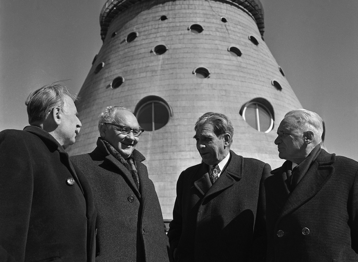 Нижнее основание имеет диаметр 60,3 метра, по мере подъема он постепенно уменьшается и на отметке 63 метра составляет уже 18 метров. Ширина железобетонного фундамента — 9,5 м. Для конструкции был выбран кольцевой тип устройства фундамента, для которого использовалась система напряженной арматуры из 104 пучков. Каждый пучок сделан из проволоки диаметром 5 мм и натянут мощными гидравлическими домкратами.